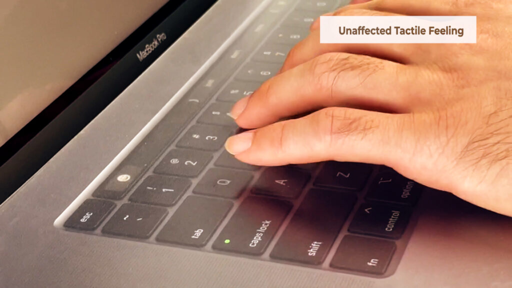 The KeyboardMask is only 0.12 mm thick, so it maintains high sensitivity and keeps all MacBook functions working perfectly, including the Touch Bar, Touchpad, and all the input and output ports.